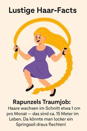 Rapunzels Traumjob: Haare wachsen im Schnitt etwa 1 cm pro Monat – das sind ca. 15 Meter im Leben. Da könnte man locker ein Springseil draus flechten!