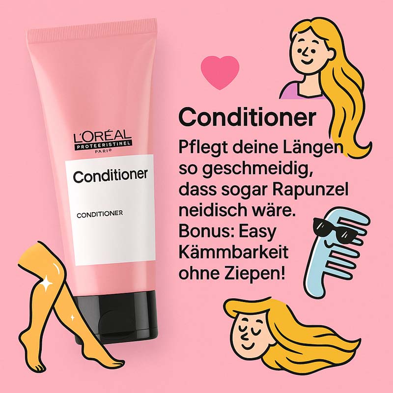 Conditioner 💕 → macht das Haar geschmeidig wie frisch geölte Disco-Beine.