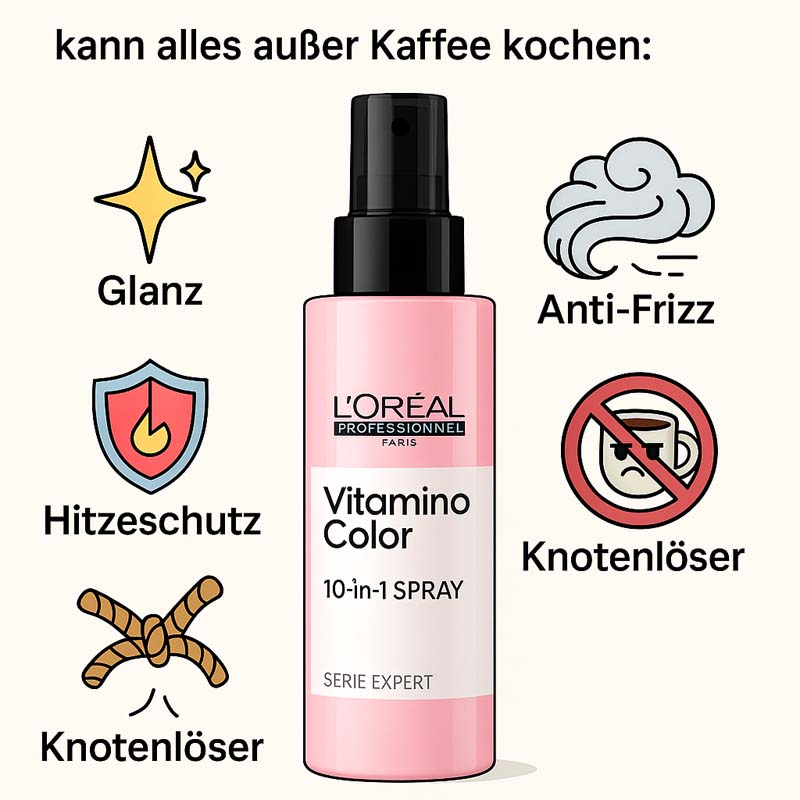 10-in-1 Spray 🚀 → kann alles außer Kaffee kochen: Hitzeschutz, Glanz, Anti-Frizz, Knotenlöser … ein echtes Multitalent.